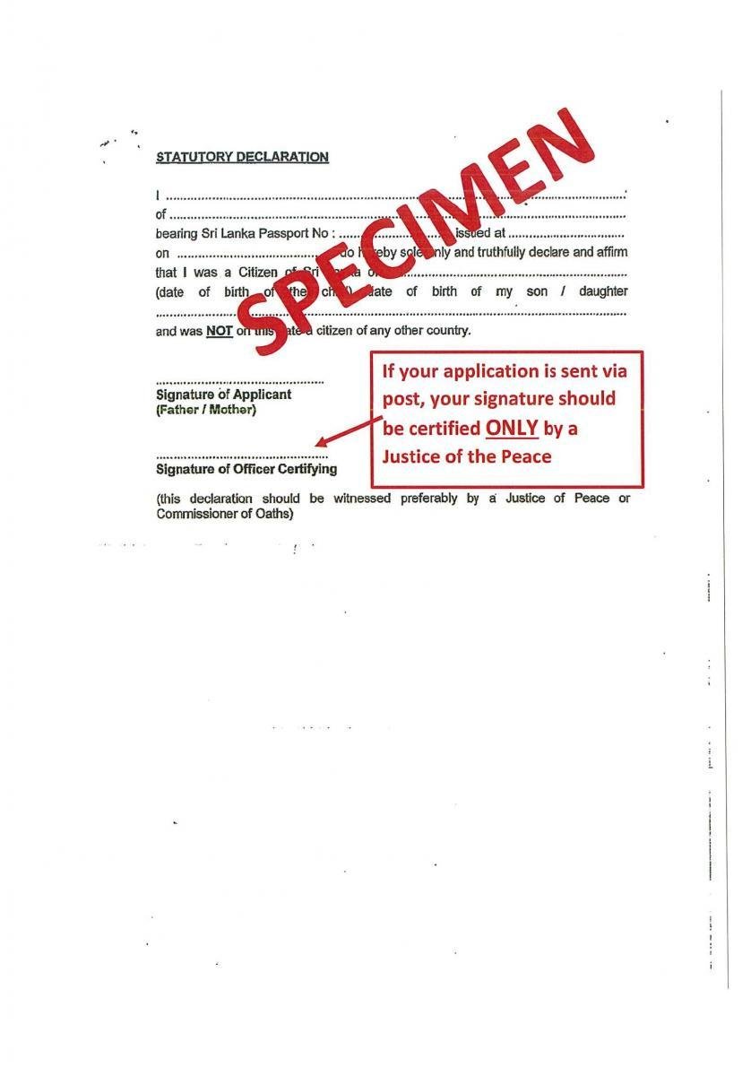 Applicants in South Australia can certify all the applications/declarations from the Honorary Consul of Sri Lanka in Adelaide at the following address and submit to this office: