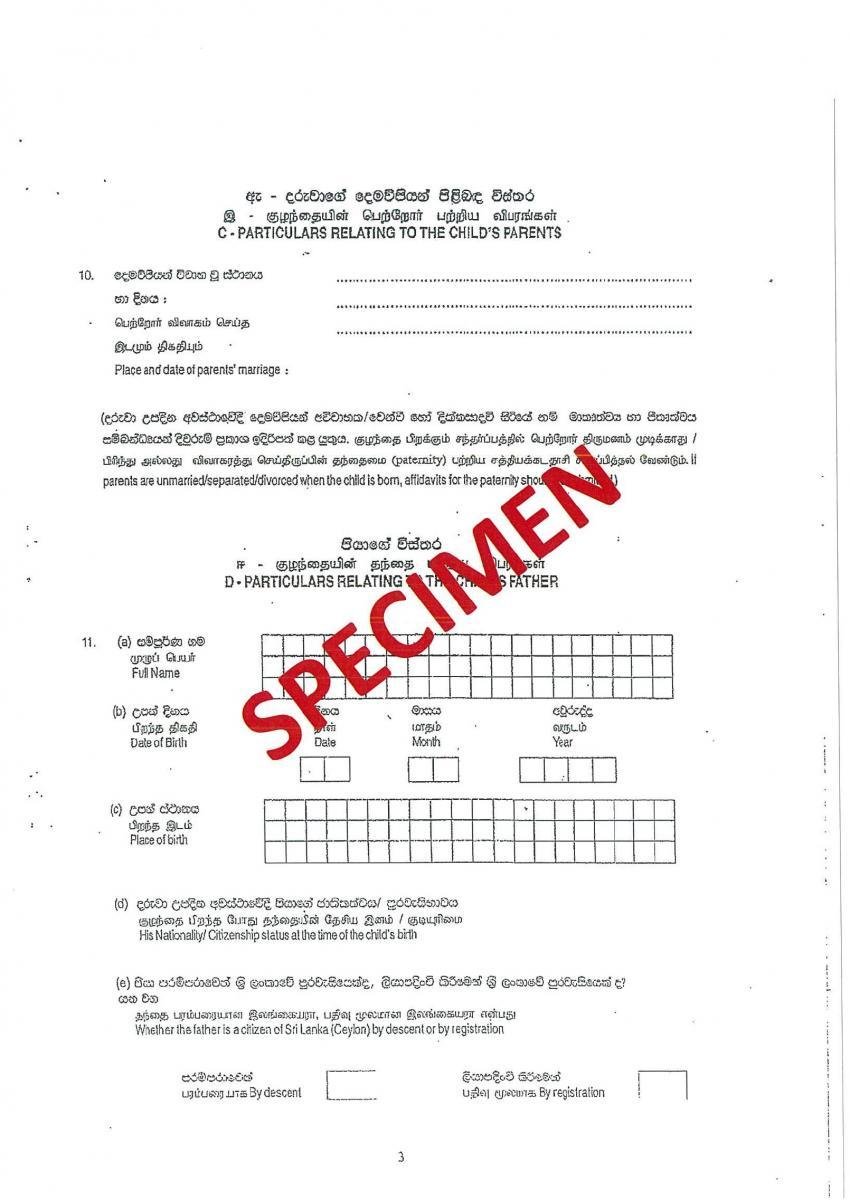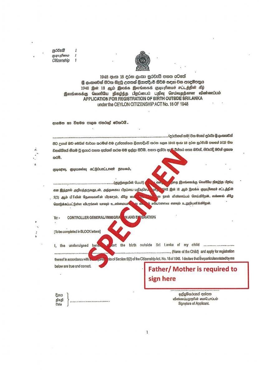 Children born outside Sri Lanka, whose birth is registered with a Sri Lanka Mission Abroad are issued with certificates under the ‘Consular Functions Act’ by the Registrar General’s Office as well as the ‘Ceylon Citizenship Act’ by the DEPARTMENT OF IMMIGRATION AND EMIGRATION SRI LANKA.